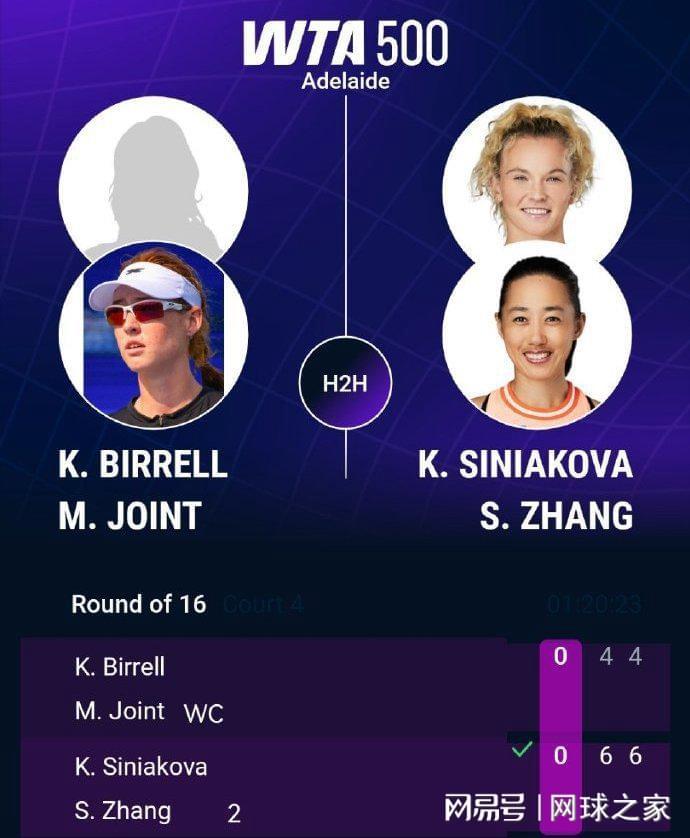 双打赛场:在首轮一场焦点战中,2号种子张帅/西尼亚科娃以6-4 6-4击败本土组合比勒尔/乔恩特,挺进八强。